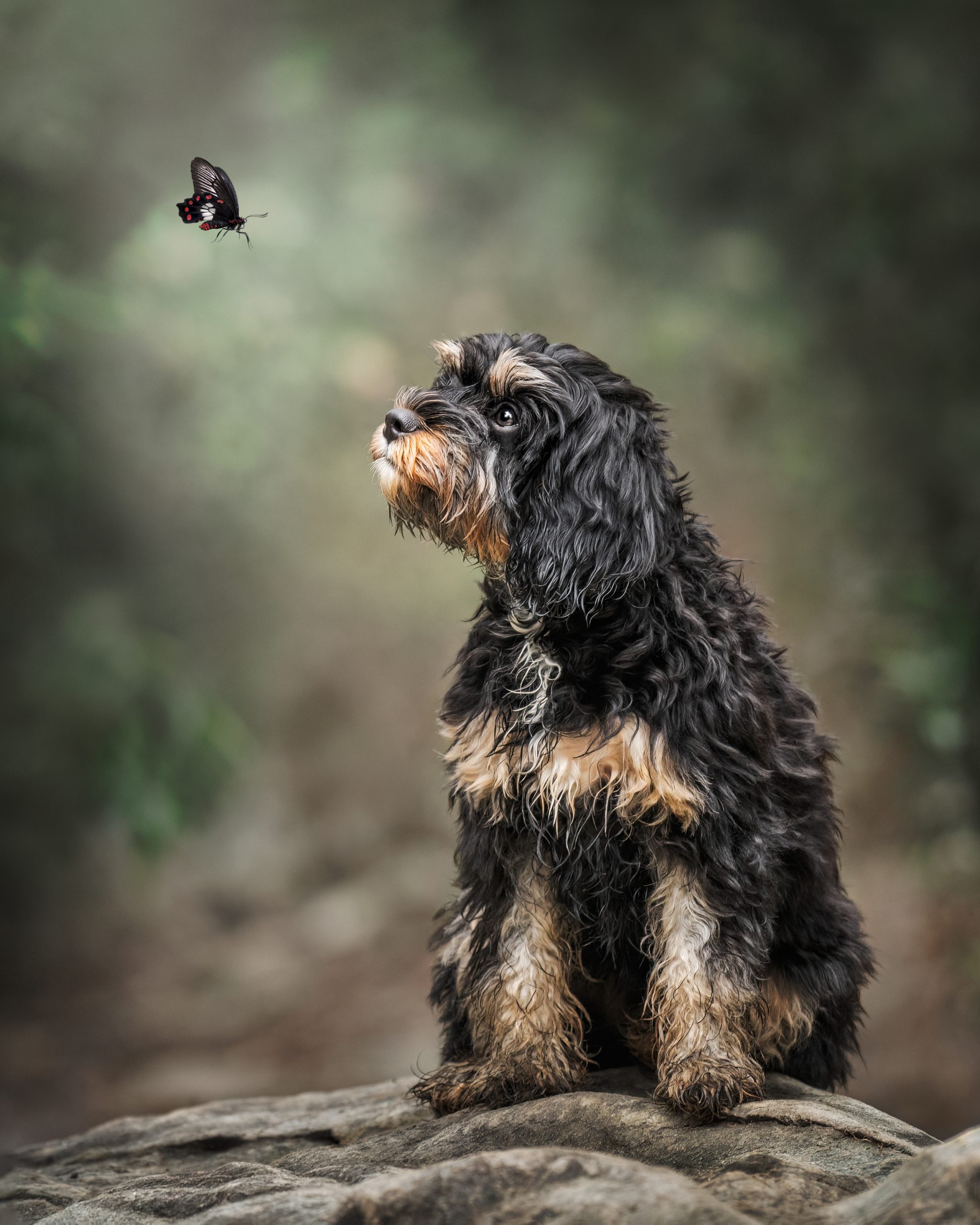 Can you see all the little distractions I removed, the detail added through contouring the rocks, shaping the light on Poppy and carefully guiding your focus towards the brightest area of the image being Poppy’s Face looking at the butterfly?